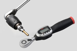 ツバ出し工具にレンチが取り付けられているタイプです。ラチェット式では順方向に回すと締めることができますが逆方向に回すと空回りする仕組みになっているため、常に力が入りやすい位置で効率よく締めることができます。