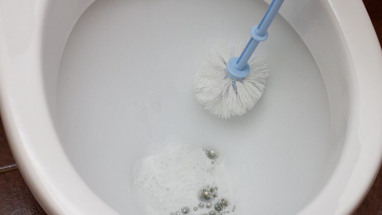 尿石などのアルカリ性の汚れや、ぬめりが原因で空気の通りが悪くなっている場合に効果的です。まず重曹(カップ1/4)を便器に入れ、その後にクエン酸(カップ1/2)を振りかけます。そこにぬるま湯を注ぐと勢いよく泡立ちます。この「泡」が汚れを浮かせます。1時間ほど放置したあと、しっかりと水を流してください。